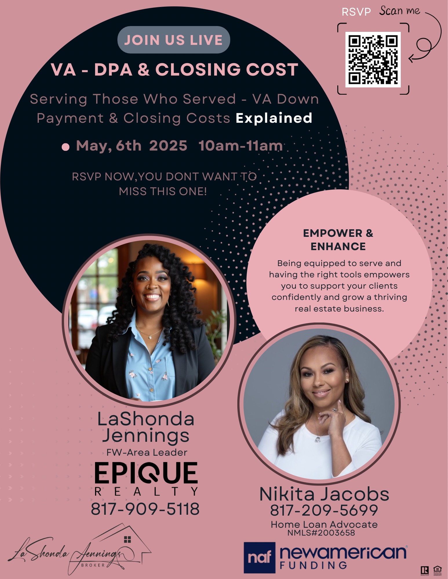 This training is perfect for agents who want to stand out in a competitive market, build trust with veteran clients, and close more deals using tools designed for those who served. Don’t miss this opportunity to gain valuable knowledge and strategies to grow your real estate business while making a meaningful impact.